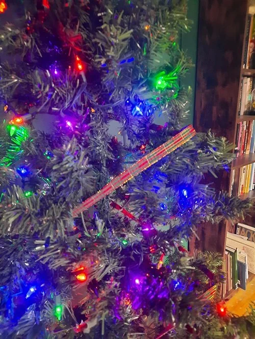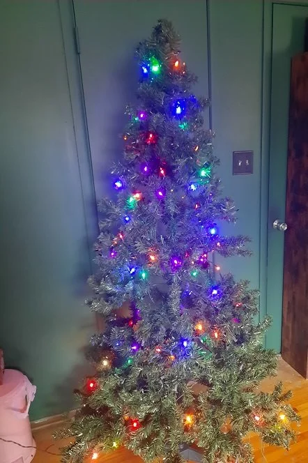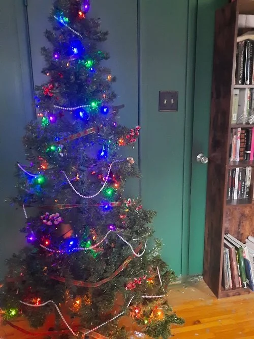 Of course, you start with a regular tree. Ours looks a litttlleee . . . anemic, I’m not gonna lie, but she’s still a good tree and fits perfectly in my office! We had to replace the lights because it was a pre-lit tree to start with and the lights it came with had long burnt out. But hey, I won’t tell if you won’t!